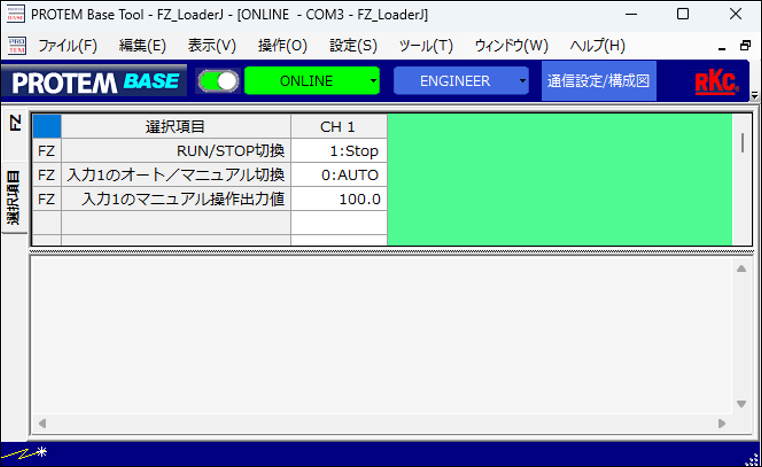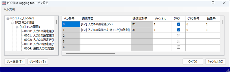 PROTEMのロギングツールを利用し、ペン設定で入出力データ(温度測定値(PV)、操作出力値(MV))を取得できる状態にします。