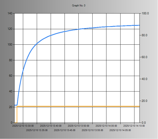 操作出力値を変更した後、測定値が安定してから、次の操作出力値へ順次変更していきます。最後の操作出力値で測定値が安定したら、ロギングを停止します。