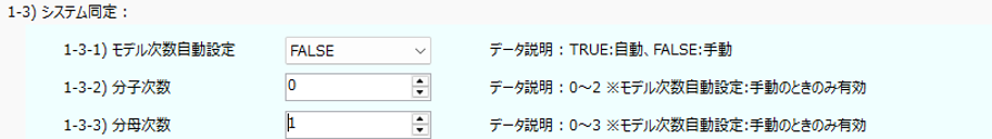 設定ツールでの次数設定例 ※モデル次数設定=FALSEを選択する
