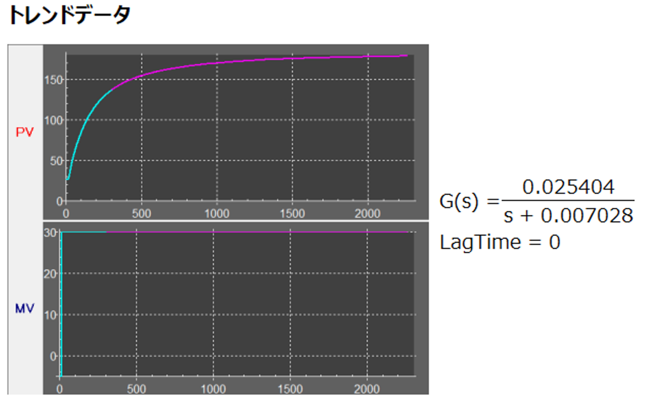 ステップ応答のロギング例 (MV=0% → MV=15%に変化させた場合)