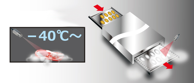 - Non-contact temperature measurement of frozen food is available from -40°C.