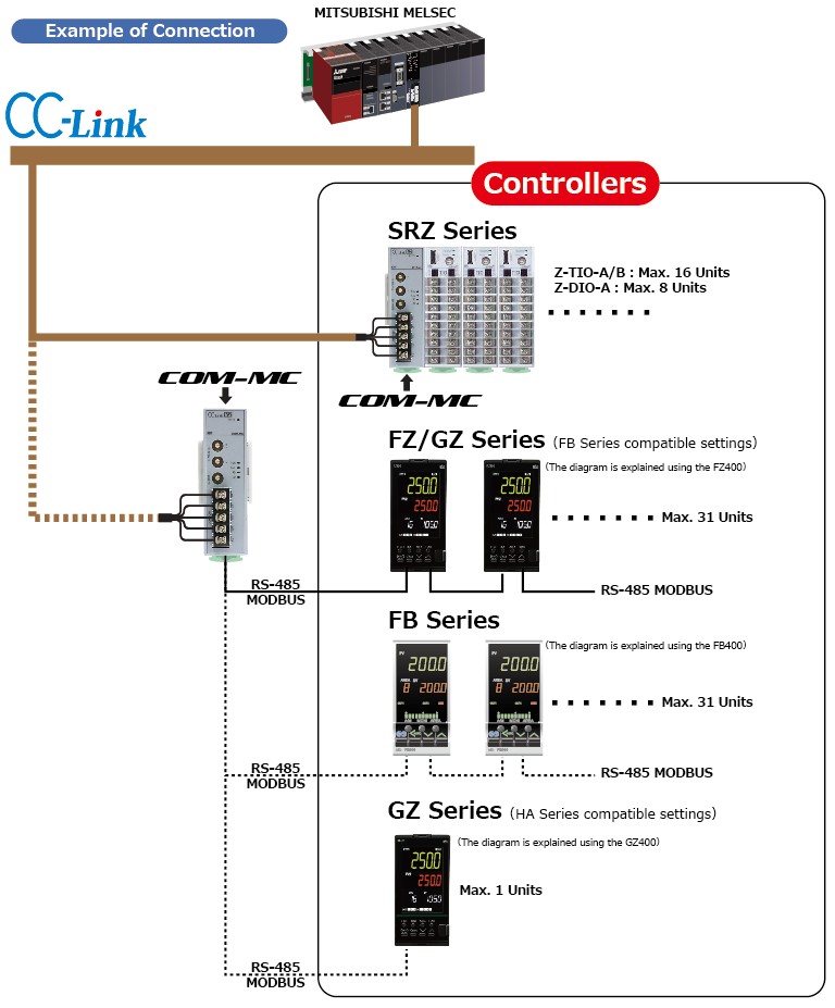 - Converter for connecting SRZ series, FZ series, GZ series, and FB series to CC-Link.