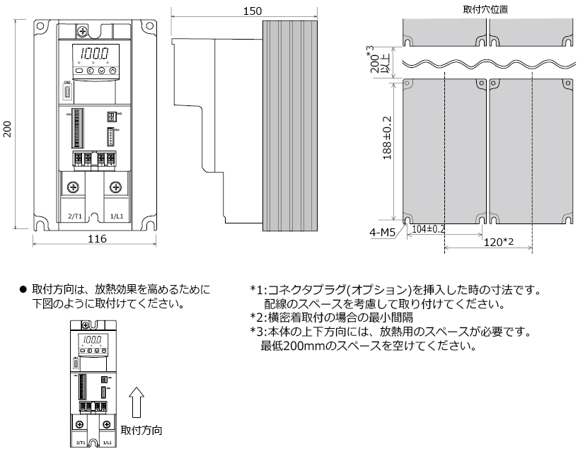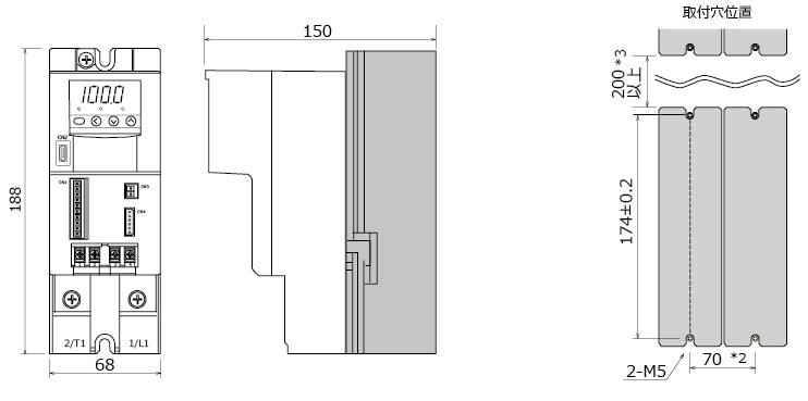 - 制御⽅式:位相制御/ゼロクロス制御(切換可能)