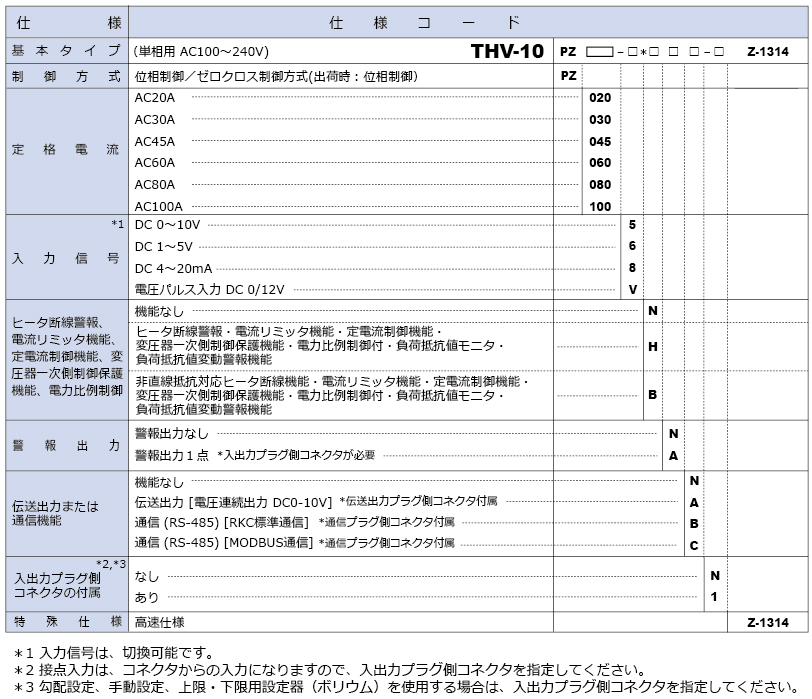 ※Z-1314は高速型THV-10電力調整器の特殊仕様コードです。