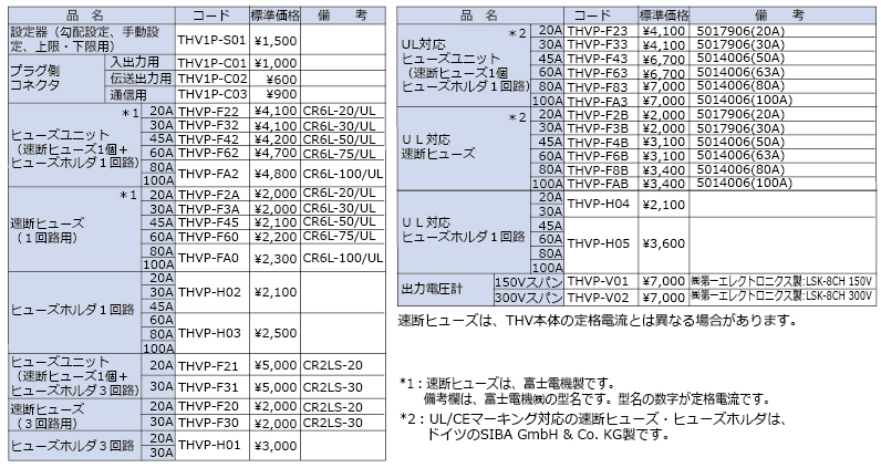その他の機能についてはTHV-10標準品(20A~100A)と同様となります。