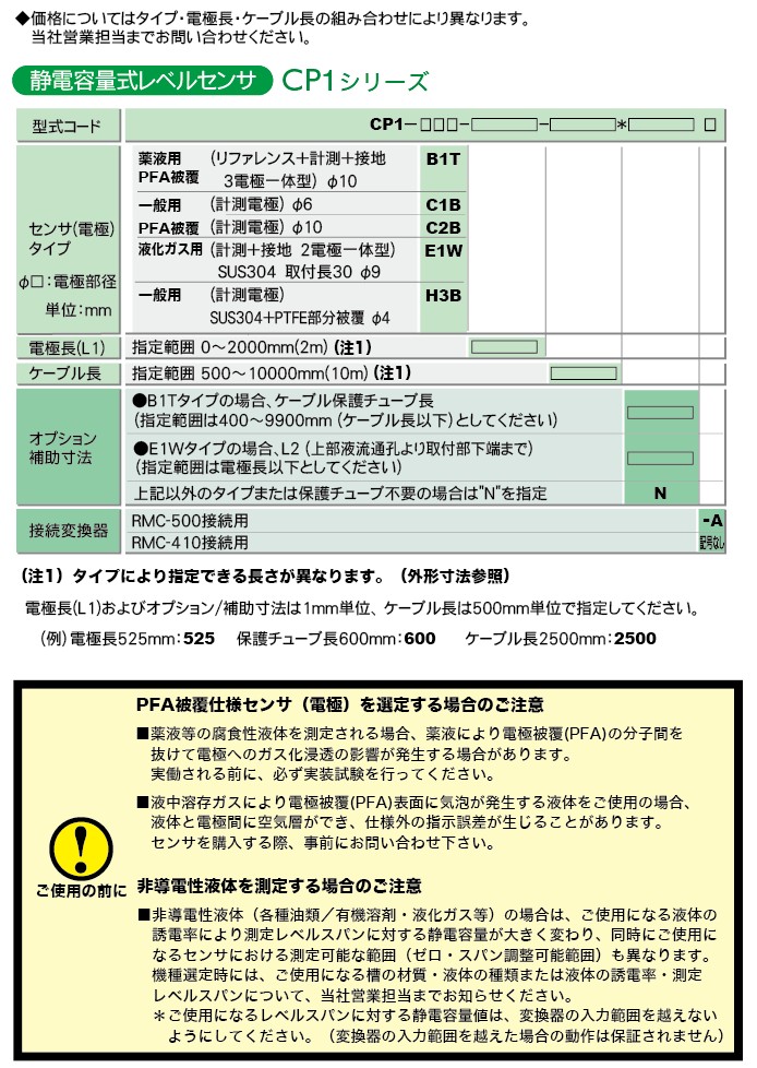 - 測定対象物:非導電性液体(主に液化ガス等の低誘電率体)