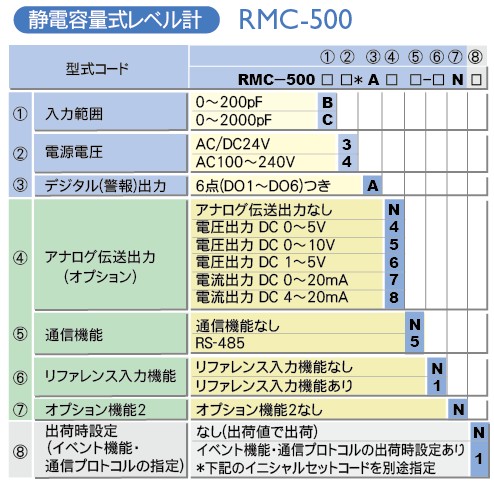 - アナログ計測出力種類:DC 4~20mA、DC 0~20mA、DC 0~5V、DC 1~5V、DC 0~10V