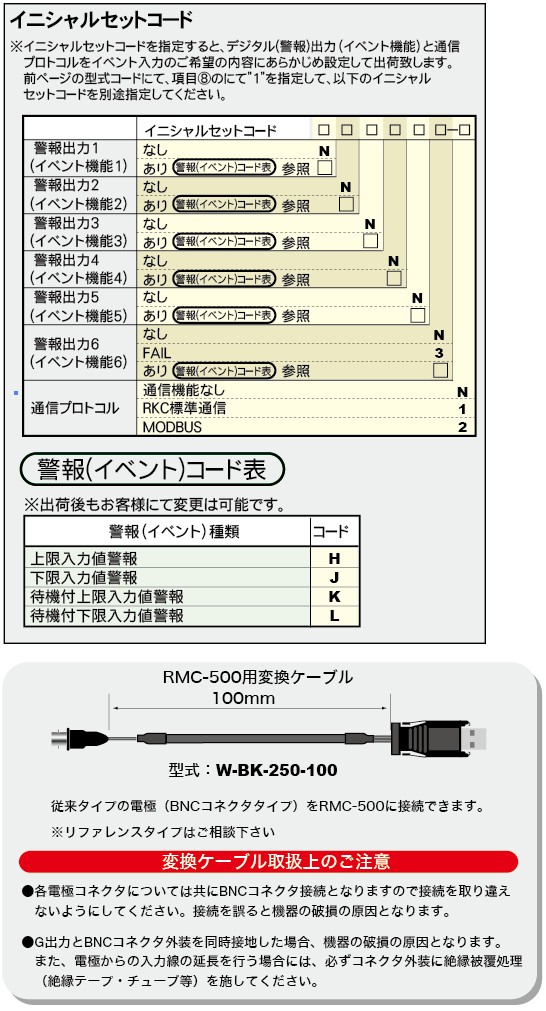 - 使用温度範囲:-200~+120℃(電極部)、-10~+60℃(ケーブル部)※氷結しないこと